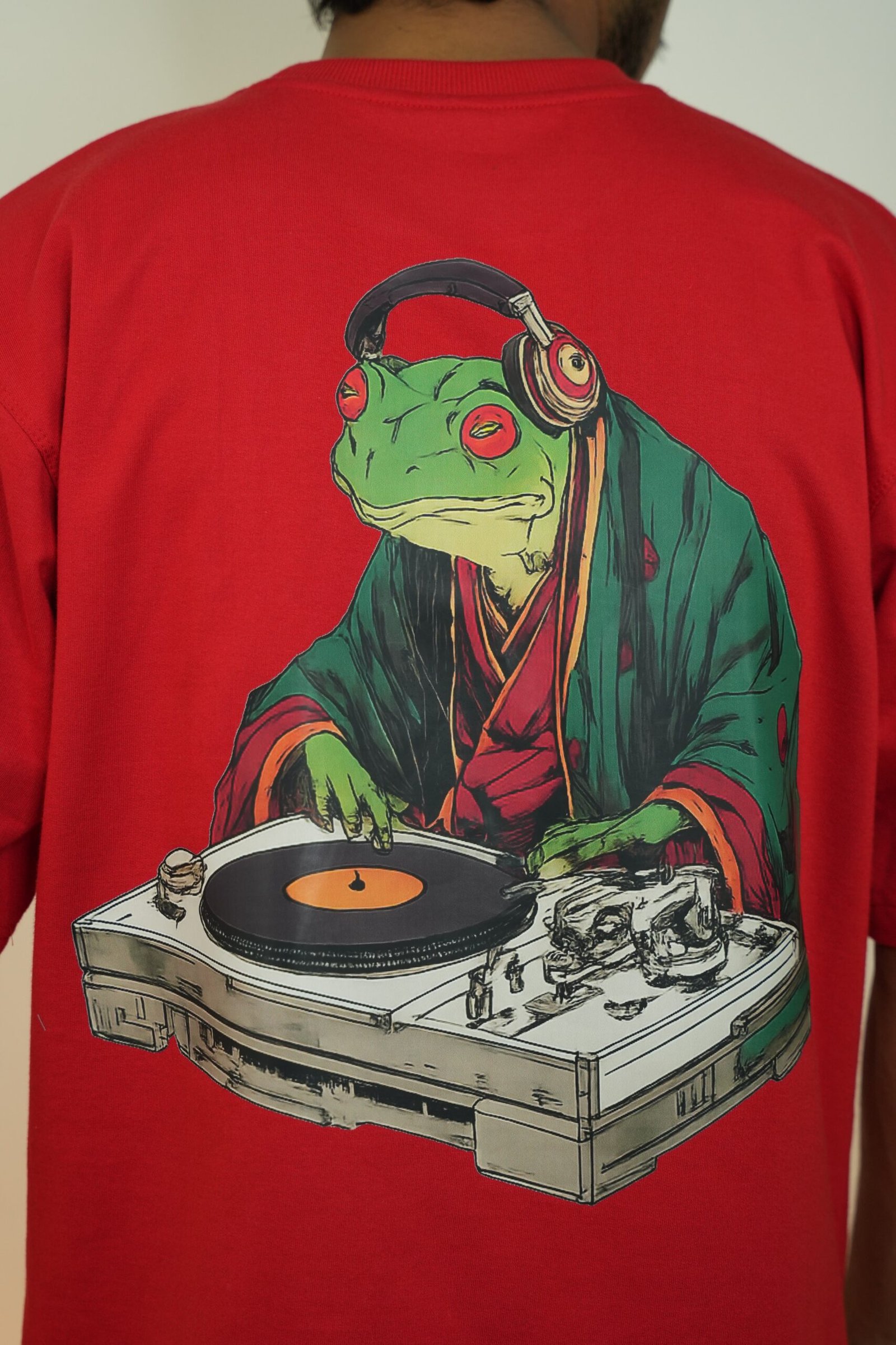 Bring a playful and bold vibe to your streetwear collection with the Frog DJ Graphic Oversized T-Shirt. Featuring a creative back print of a frog DJ wearing headphones and mixing music on a turntable, this design blends music culture with modern street fashion.