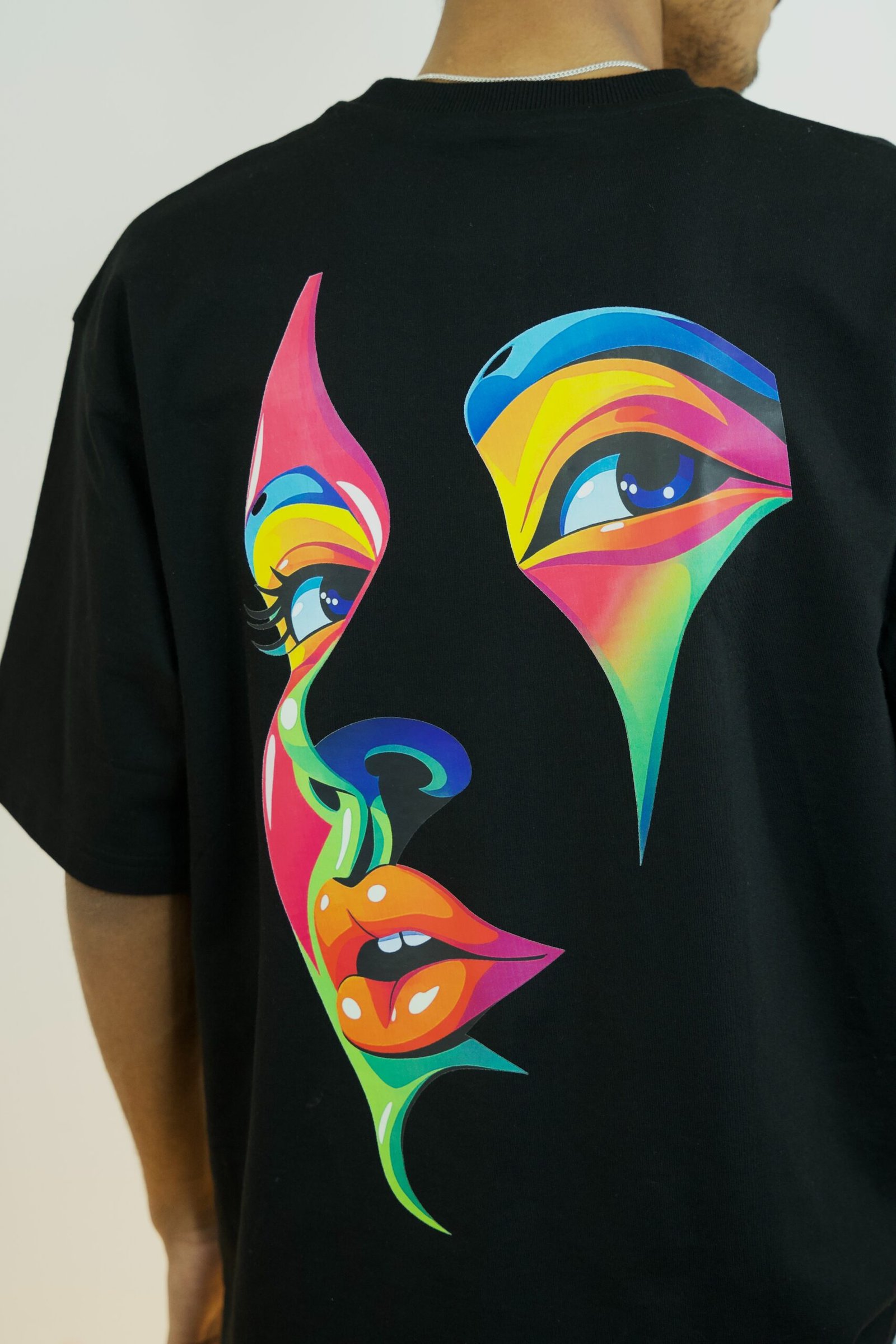 Bring a bold and artistic vibe to your streetwear collection with the Vibrant Pop Art Face Graphic Oversized T-Shirt. Featuring a stunning back print of an abstract face in a vivid pop art style, this design combines modern street fashion with creative, colorful artwork. The detailed and vibrant graphic gives the T-shirt a unique and eye-catching appearance that stands out in any crowd.